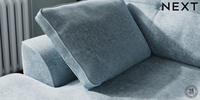 7.2.10 Stamford Buttoned Back Small Sofa Chaise - Left Hand Plush Chenille Light Blue Large Square Angle - Gunmetal | Made Click here to use our website with more accessibility support, for example screen readers