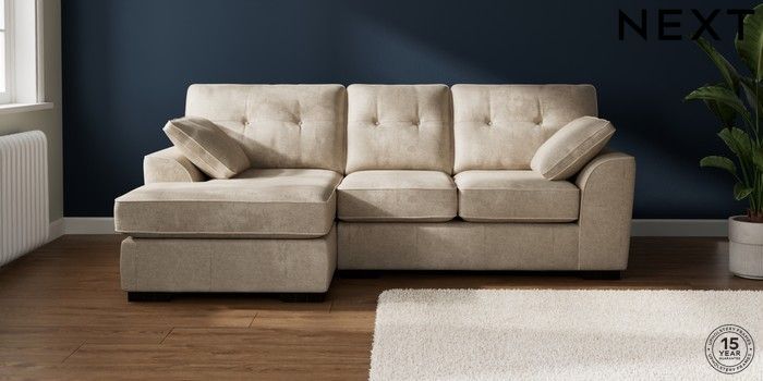 7.2.10 Stamford Buttoned Back Small Sofa Chaise - Left Hand Plush Chenille Light Natural Large Square Angle - Dark | Made Click here to use our website with more accessibility support, for example screen readers