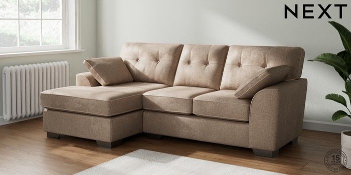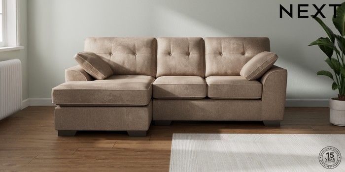 7.2.10 Stamford Buttoned Back Small Sofa Chaise - Left Hand Plush Chenille Mid Natural Large Square Angle - Gunmetal | Made Click here to use our website with more accessibility support, for example screen readers