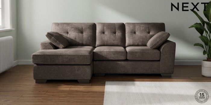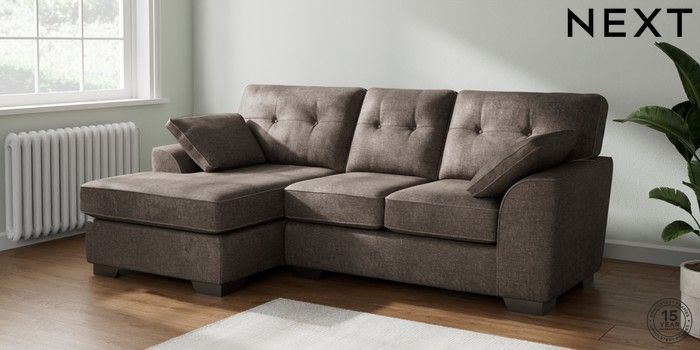 7.2.10 Stamford Buttoned Back Small Sofa Chaise - Left Hand Plush Chenille Mink Brown Large Square Angle - Gunmetal | Made Click here to use our website with more accessibility support, for example screen readers