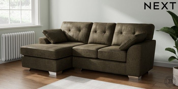 7.2.10 Stamford Buttoned Back Small Sofa Chaise - Left Hand Plush Chenille Moss Green Large Square Angle - Chrome Metal | Made Click here to use our website with more accessibility support, for example screen readers