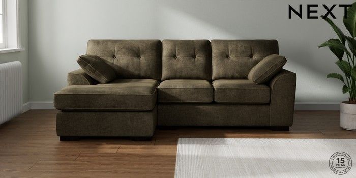 7.2.10 Stamford Buttoned Back Small Sofa Chaise - Left Hand Plush Chenille Moss Green Large Square Angle - Dark | Made Click here to use our website with more accessibility support, for example screen readers
