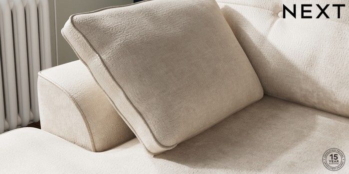 7.2.10 Stamford Buttoned Back Small Sofa Chaise - Left Hand Plush Chenille Oyster Large Square Angle - Brushed Brass | Made Click here to use our website with more accessibility support, for example screen readers