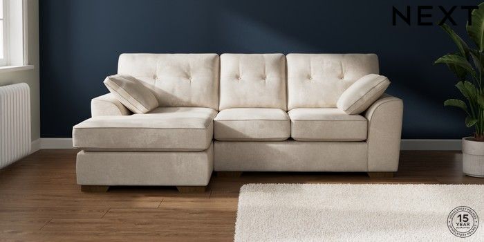 7.2.10 Stamford Buttoned Back Small Sofa Chaise - Left Hand Plush Chenille Oyster Large Square Angle - Mid | Made Click here to use our website with more accessibility support, for example screen readers