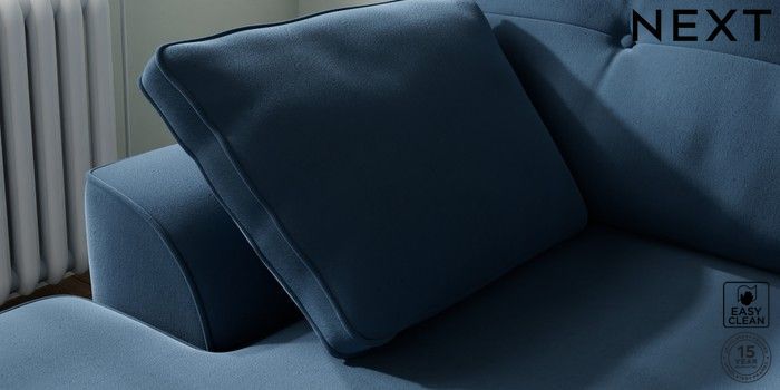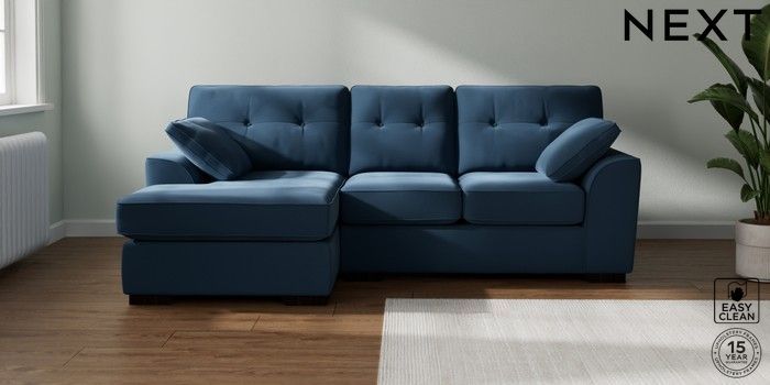 7.2.10 Stamford Buttoned Back Small Sofa Chaise - Left Hand Plush Velvet Easy Clean Airforce Blue Large Square Angle - Dark | Made Click here to use our website with more accessibility support, for example screen readers