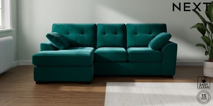 7.2.10 Stamford Buttoned Back Small Sofa Chaise - Left Hand Plush Velvet Easy Clean Juniper Green Large Square Angle - Dark | Made Click here to use our website with more accessibility support, for example screen readers