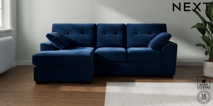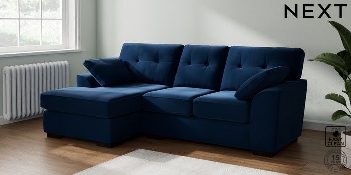 7.2.10 Stamford Buttoned Back Small Sofa Chaise - Left Hand Plush Velvet Easy Clean Navy Blue Large Square Angle - Dark | Made Click here to use our website with more accessibility support, for example screen readers