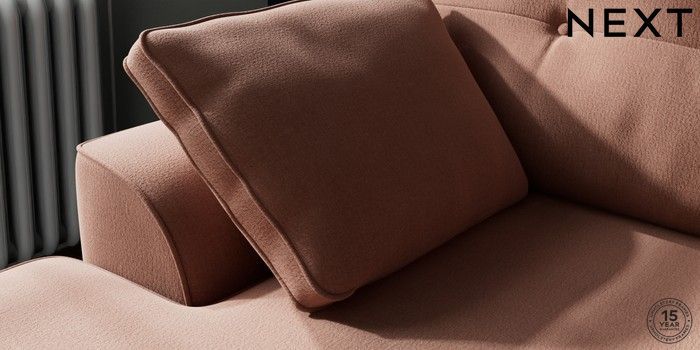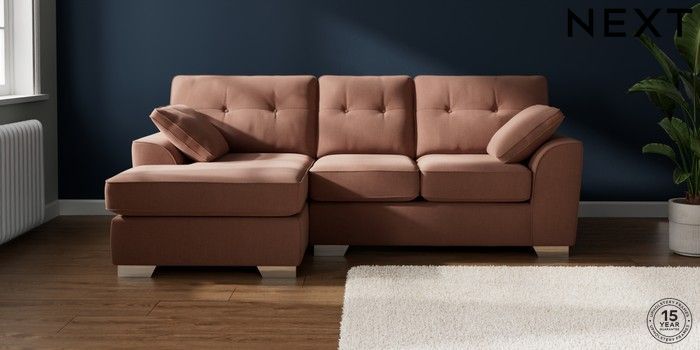 7.2.10 Stamford Buttoned Back Small Sofa Chaise - Left Hand Relaxed Linen Look Light Rust Brown Large Square Angle - Chrome Metal | Made Click here to use our website with more accessibility support, for example screen readers