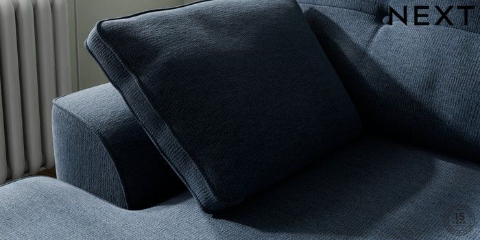 7.2.10 Stamford Buttoned Back Small Sofa Chaise - Left Hand Ripple Chenille Dark Blue Large Square Angle - Gunmetal | Made Click here to use our website with more accessibility support, for example screen readers