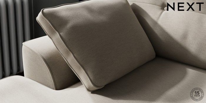 7.2.10 Stamford Buttoned Back Small Sofa Chaise - Left Hand Ripple Chenille Light Natural Large Square Angle - Chrome Metal | Made Click here to use our website with more accessibility support, for example screen readers