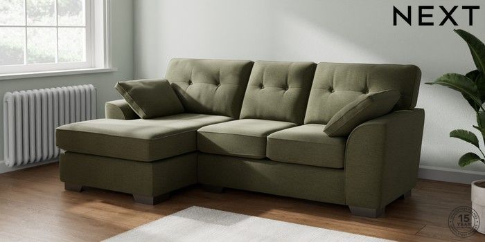 7.2.10 Stamford Buttoned Back Small Sofa Chaise - Left Hand Ripple Chenille Mid Moss Green Large Square Angle - Gunmetal | Made Click here to use our website with more accessibility support, for example screen readers