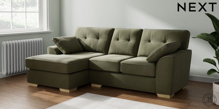 7.2.10 Stamford Buttoned Back Small Sofa Chaise - Left Hand Ripple Chenille Mid Moss Green Large Square Angle - Light | Made Click here to use our website with more accessibility support, for example screen readers