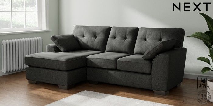 7.2.10 Stamford Buttoned Back Small Sofa Chaise - Left Hand Tweedy Blend Easy Clean Charcoal Grey Large Square Angle - Gunmetal | Made Click here to use our website with more accessibility support, for example screen readers