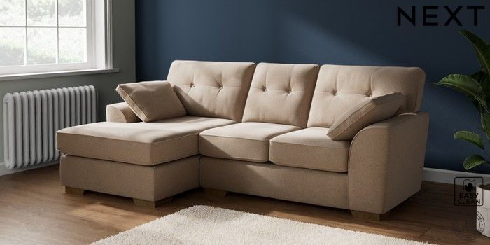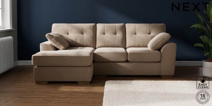 7.2.10 Stamford Buttoned Back Small Sofa Chaise - Left Hand Tweedy Blend Easy Clean Light Dove Natural Large Square Angle - Mid | Made Click here to use our website with more accessibility support, for example screen readers