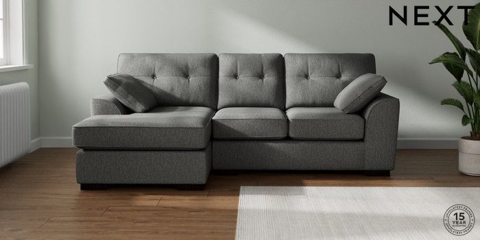 7.2.10 Stamford Buttoned Back Small Sofa Chaise - Left Hand Tweedy Chenille Dark Grey Large Square Angle - Dark | Made Click here to use our website with more accessibility support, for example screen readers