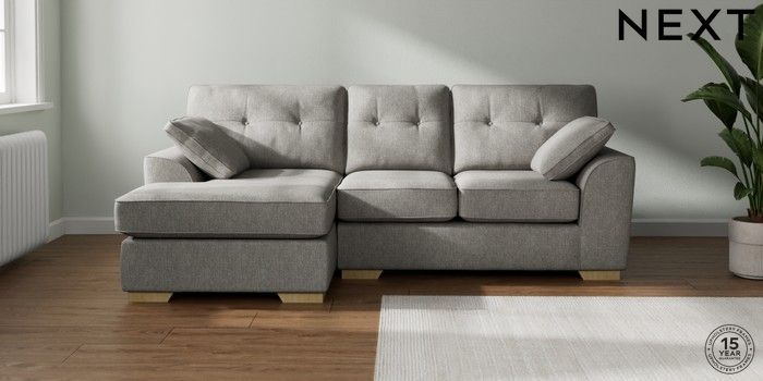 7.2.10 Stamford Buttoned Back Small Sofa Chaise - Left Hand Tweedy Chenille Mid Grey Large Square Angle - Light | Made Click here to use our website with more accessibility support, for example screen readers