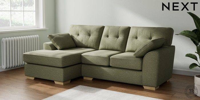 7.2.10 Stamford Buttoned Back Small Sofa Chaise - Left Hand Tweedy Chenille Mid Moss Green Large Square Angle - Light | Made Click here to use our website with more accessibility support, for example screen readers