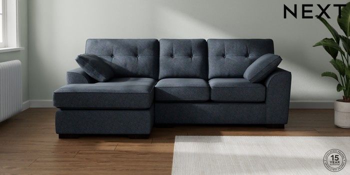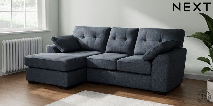 7.2.10 Stamford Buttoned Back Small Sofa Chaise - Left Hand Tweedy Chenille Navy Blue Large Square Angle - Dark | Made Click here to use our website with more accessibility support, for example screen readers