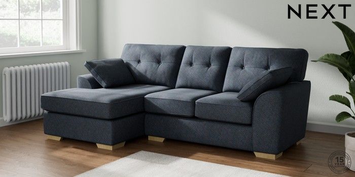 7.2.10 Stamford Buttoned Back Small Sofa Chaise - Left Hand Tweedy Chenille Navy Blue Large Square Angle - Light | Made Click here to use our website with more accessibility support, for example screen readers