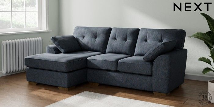 7.2.10 Stamford Buttoned Back Small Sofa Chaise - Left Hand Tweedy Chenille Navy Blue Large Square Angle - Mid | Made Click here to use our website with more accessibility support, for example screen readers