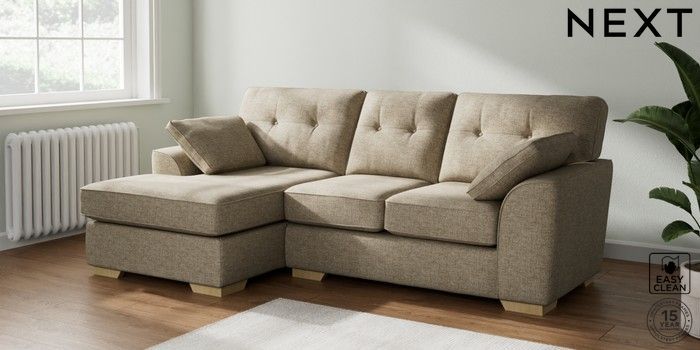 7.2.10 Stamford Buttoned Back Small Sofa Chaise - Left Hand Woven Chenille Easy Clean Mid Natural Large Square Angle - Light | Made Click here to use our website with more accessibility support, for example screen readers