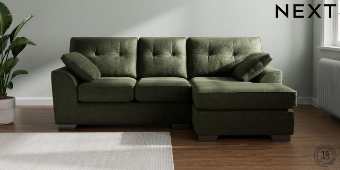 7.2.10 Stamford Buttoned Back Small Sofa Chaise - Right Hand Boucle Chenille Dark Moss Green Large Square Angle - Gunmetal | Made Click here to use our website with more accessibility support, for example screen readers