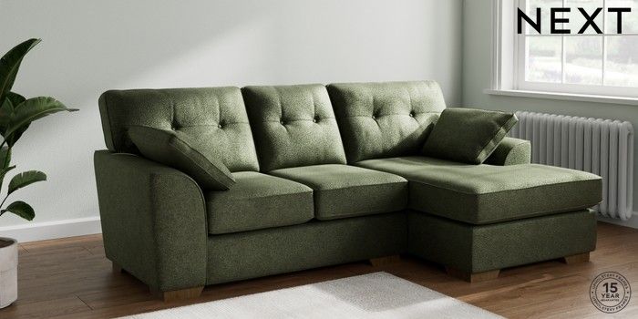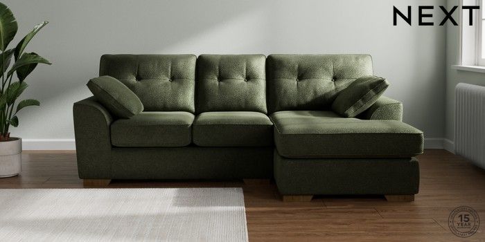 7.2.10 Stamford Buttoned Back Small Sofa Chaise - Right Hand Boucle Chenille Dark Moss Green Large Square Angle - Mid | Made Click here to use our website with more accessibility support, for example screen readers