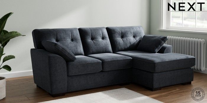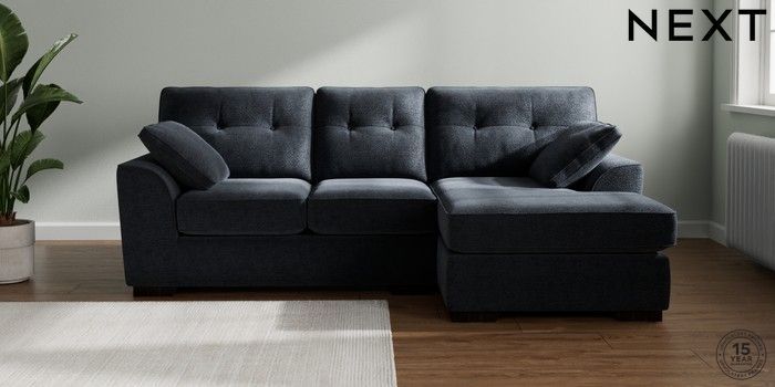 7.2.10 Stamford Buttoned Back Small Sofa Chaise - Right Hand Boucle Chenille Dark Slate Blue Large Square Angle - Dark | Made Click here to use our website with more accessibility support, for example screen readers