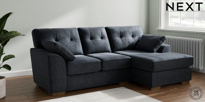 7.2.10 Stamford Buttoned Back Small Sofa Chaise - Right Hand Boucle Chenille Dark Slate Blue Large Square Angle - Mid | Made Click here to use our website with more accessibility support, for example screen readers