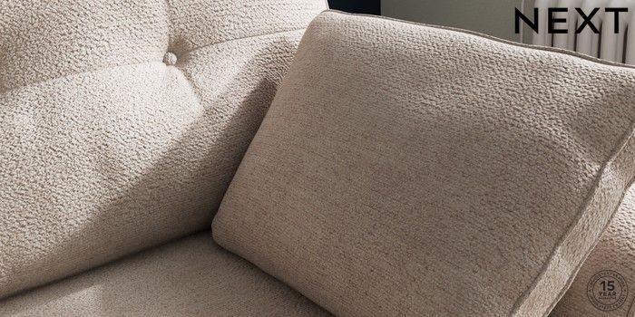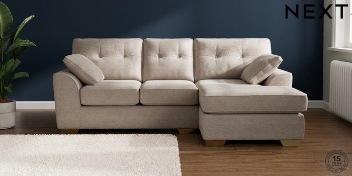 7.2.10 Stamford Buttoned Back Small Sofa Chaise - Right Hand Boucle Chenille Light Natural Large Square Angle - Brushed Brass | Made Click here to use our website with more accessibility support, for example screen readers