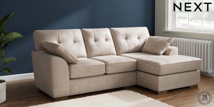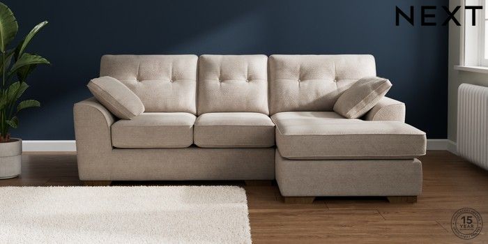 7.2.10 Stamford Buttoned Back Small Sofa Chaise - Right Hand Boucle Chenille Light Natural Large Square Angle - Mid | Made Click here to use our website with more accessibility support, for example screen readers