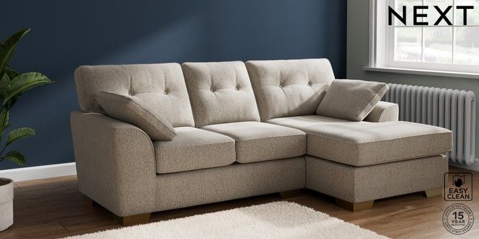 7.2.10 Stamford Buttoned Back Small Sofa Chaise - Right Hand Chunky Boucle Easy Clean Dove Large Square Angle - Brushed Brass | Made Click here to use our website with more accessibility support, for example screen readers