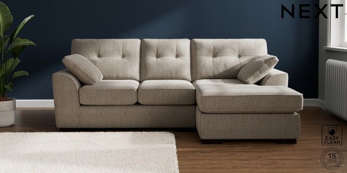 7.2.10 Stamford Buttoned Back Small Sofa Chaise - Right Hand Chunky Boucle Easy Clean Dove Large Square Angle - Dark | Made Click here to use our website with more accessibility support, for example screen readers