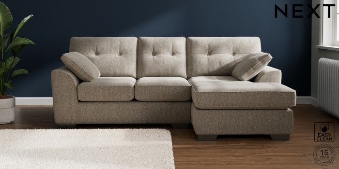 7.2.10 Stamford Buttoned Back Small Sofa Chaise - Right Hand Chunky Boucle Easy Clean Dove Large Square Angle - Gunmetal | Made Click here to use our website with more accessibility support, for example screen readers