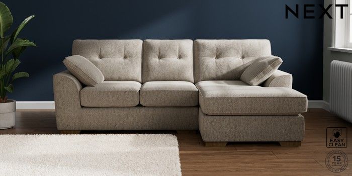 7.2.10 Stamford Buttoned Back Small Sofa Chaise - Right Hand Chunky Boucle Easy Clean Dove Large Square Angle - Mid | Made Click here to use our website with more accessibility support, for example screen readers