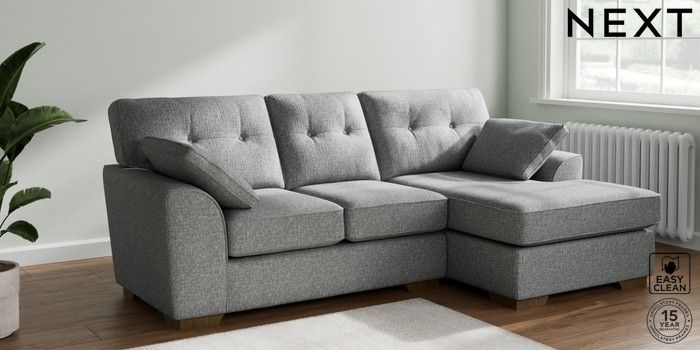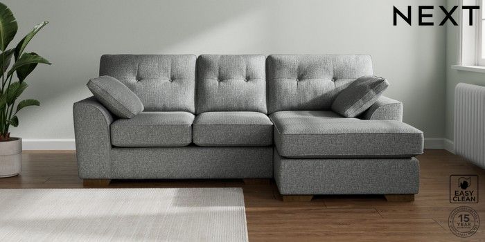 7.2.10 Stamford Buttoned Back Small Sofa Chaise - Right Hand Chunky Boucle Easy Clean Mid Grey Large Square Angle - Mid | Made Click here to use our website with more accessibility support, for example screen readers