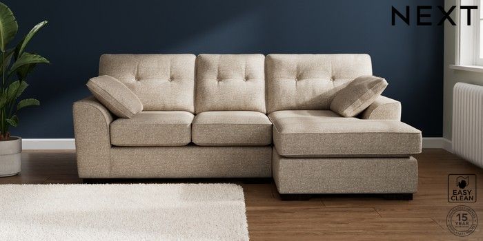 7.2.10 Stamford Buttoned Back Small Sofa Chaise - Right Hand Chunky Boucle Easy Clean Mid Natural Large Square Angle - Dark | Made Click here to use our website with more accessibility support, for example screen readers