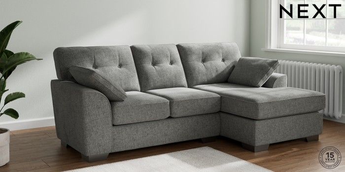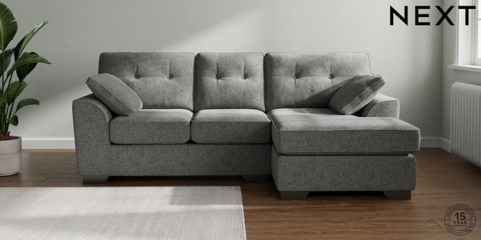 7.2.10 Stamford Buttoned Back Small Sofa Chaise - Right Hand Chunky Chenille Dark Grey Large Square Angle - Gunmetal | Made Click here to use our website with more accessibility support, for example screen readers