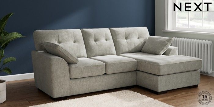 7.2.10 Stamford Buttoned Back Small Sofa Chaise - Right Hand Chunky Chenille Light Grey Large Square Angle - Dark | Made Click here to use our website with more accessibility support, for example screen readers