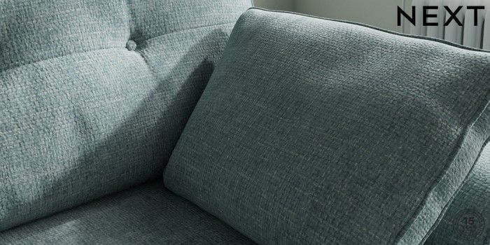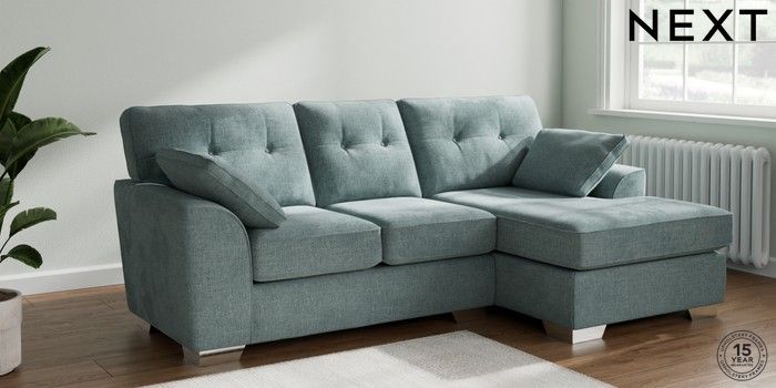 7.2.10 Stamford Buttoned Back Small Sofa Chaise - Right Hand Chunky Chenille Light Teal Green Large Square Angle - Chrome Metal | Made Click here to use our website with more accessibility support, for example screen readers
