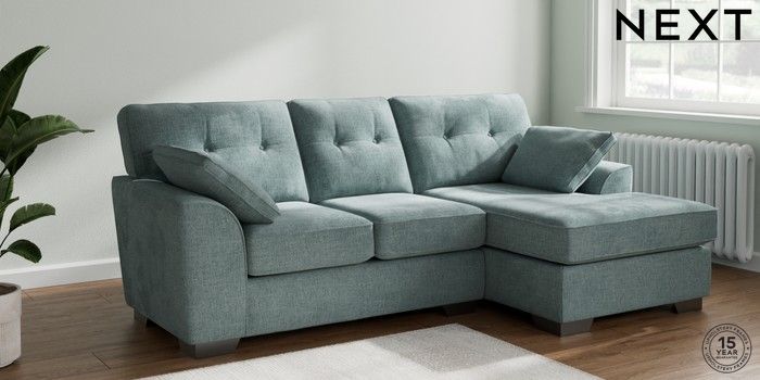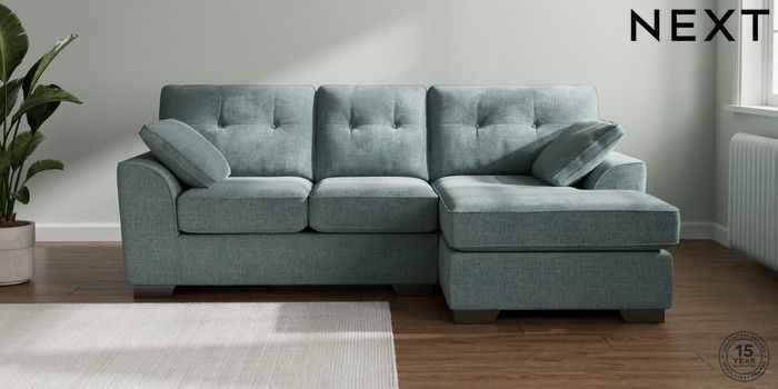 7.2.10 Stamford Buttoned Back Small Sofa Chaise - Right Hand Chunky Chenille Light Teal Green Large Square Angle - Gunmetal | Made Click here to use our website with more accessibility support, for example screen readers