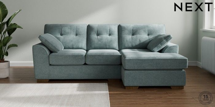 7.2.10 Stamford Buttoned Back Small Sofa Chaise - Right Hand Chunky Chenille Light Teal Green Large Square Angle - Mid | Made Click here to use our website with more accessibility support, for example screen readers