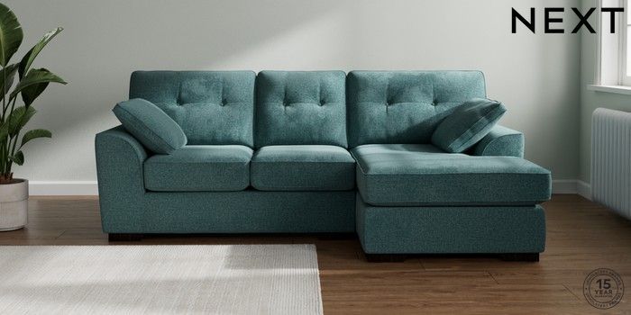 7.2.10 Stamford Buttoned Back Small Sofa Chaise - Right Hand Chunky Chenille Mid Teal Green Large Square Angle - Dark | Made Click here to use our website with more accessibility support, for example screen readers