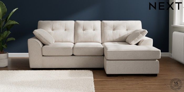 7.2.10 Stamford Buttoned Back Small Sofa Chaise - Right Hand Chunky Chenille Oyster Large Square Angle - Dark | Made Click here to use our website with more accessibility support, for example screen readers