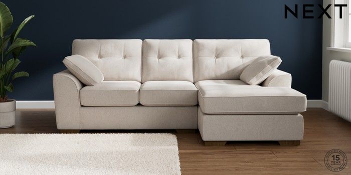 7.2.10 Stamford Buttoned Back Small Sofa Chaise - Right Hand Chunky Chenille Oyster Large Square Angle - Mid | Made Click here to use our website with more accessibility support, for example screen readers