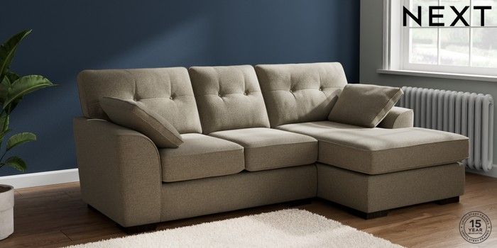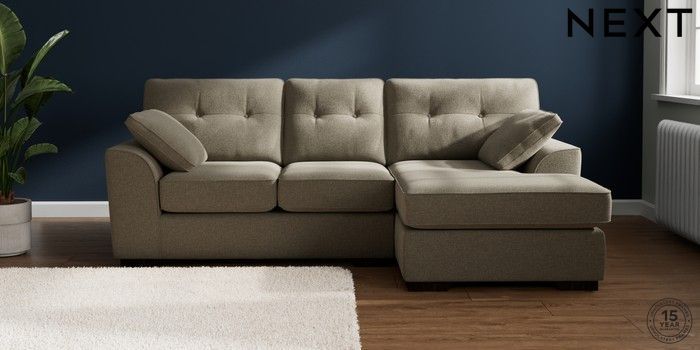 7.2.10 Stamford Buttoned Back Small Sofa Chaise - Right Hand Chunky Marl Light Olive Green Large Square Angle - Dark | Made Click here to use our website with more accessibility support, for example screen readers