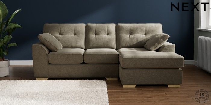 7.2.10 Stamford Buttoned Back Small Sofa Chaise - Right Hand Chunky Marl Light Olive Green Large Square Angle - Light | Made Click here to use our website with more accessibility support, for example screen readers
