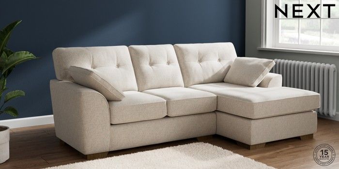 7.2.10 Stamford Buttoned Back Small Sofa Chaise - Right Hand Chunky Marl Oyster Large Square Angle - Mid | Made Click here to use our website with more accessibility support, for example screen readers