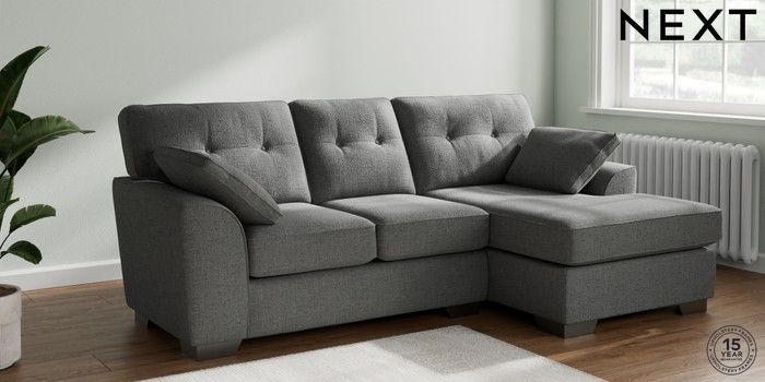 7.2.10 Stamford Buttoned Back Small Sofa Chaise - Right Hand Chunky Texture Dark Grey Large Square Angle - Gunmetal | Made Click here to use our website with more accessibility support, for example screen readers
