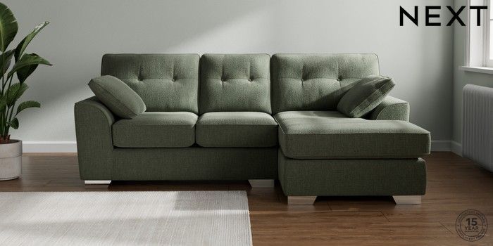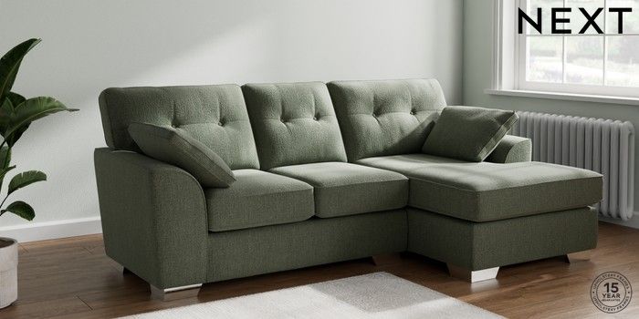 7.2.10 Stamford Buttoned Back Small Sofa Chaise - Right Hand Chunky Texture Mid Forest Green Large Square Angle - Chrome Metal | Made Click here to use our website with more accessibility support, for example screen readers